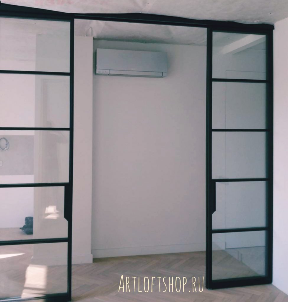 Перегородка лофт из стекла и металла.